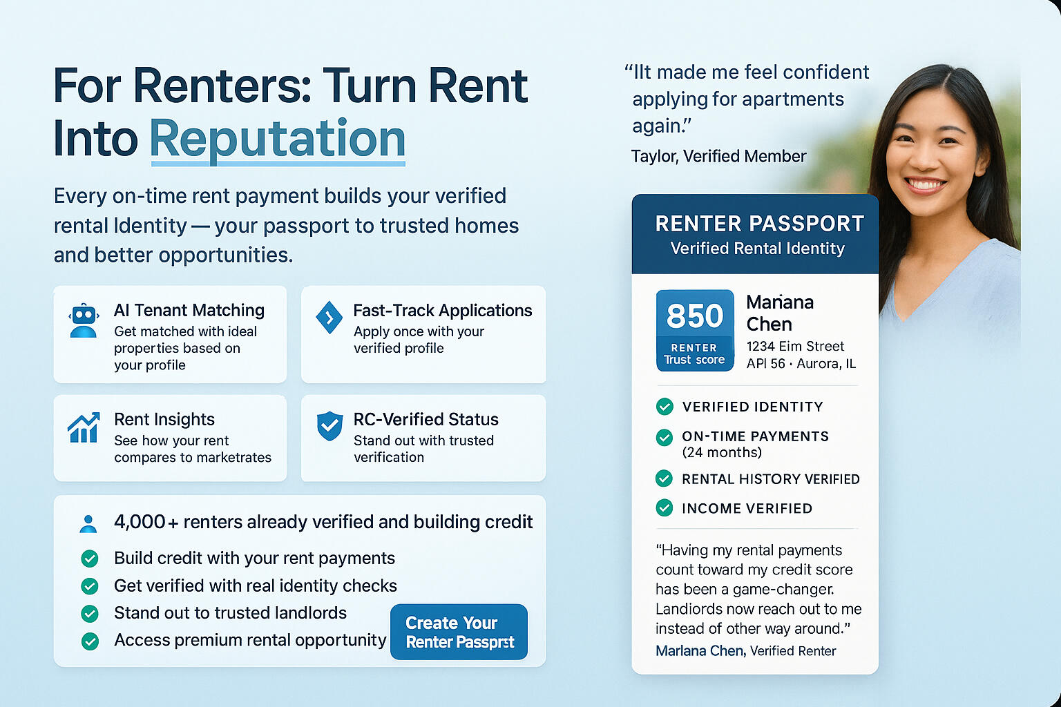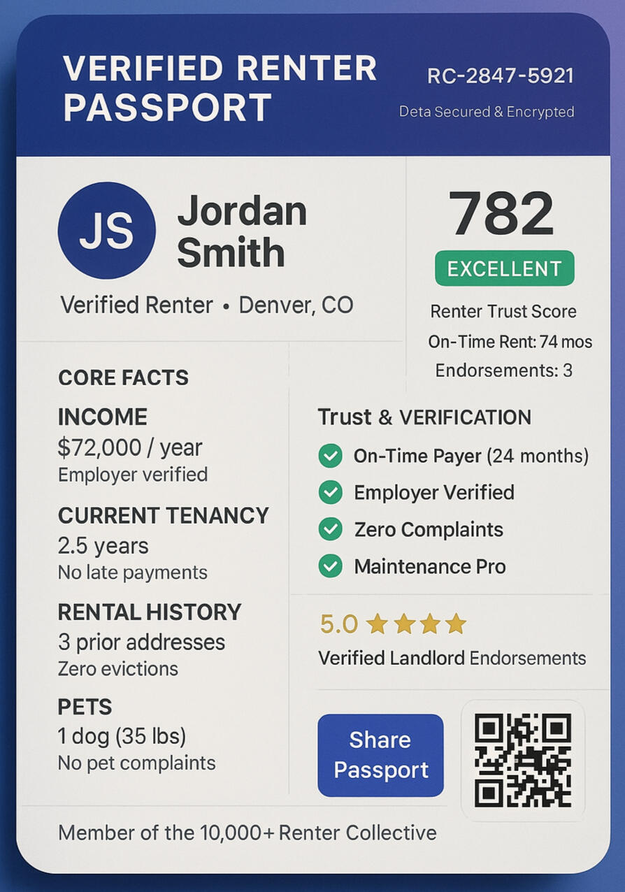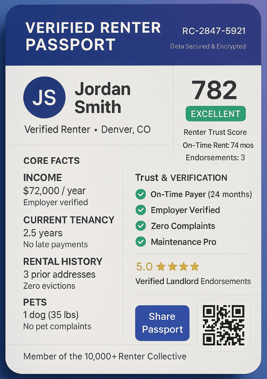 🔒 Identity Verified ⭐ Credit From Rent 📘 Renter Passport
