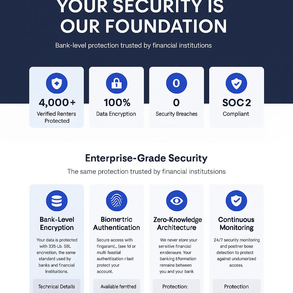 Bank-level secure. We use the same encryption and protection standards as financial institutions. Your identity is verified without hard credit checks, and we never store your banking login information. Your privacy is non-negotiable.